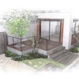 耐久性に優れたウリンデッキと枕木のステップが